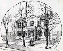 The house was originally located on a plot of land 1.5 km (0.93 mi) southeast of its current location, at the intersection of what is now Adelaide Street (then 64 Duke Street) and Frederick Street. More specifically, it stood at the head of Frederick Street as a view terminus, on the site presently occupied by George Brown College's Chef School or Centre for Hospitality at 300 Adelaide Street East. Upon Sir William Campbell's death in 1834, his estate conveyed the house to his wife, Lady Campbell, for her use. After Lady Campbell's death in 1844, her estate auctioned the property and the contents of the house with the proceeds distributed amongst their heirs. For most of the 19th century the structure remained a private residence.[3] It was home to various prominent citizens (Hon. James Gordon, Terence O’Neil, John Strathy and John Fensom) until 1890, by which point the neighbourhood had changed into a commercial and industrial zone. The building eventually came to be used by several businesses after the turn of the 20th century as office space and a factory, including Hobbs Glass Company; Capewell Horse Nail Company and Masco Elevator Company.