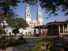 The Our Lady of the Immaculate Conception Cathedral[1] (Spanish: Catedral de Nuestra Señora de la Purísima Concepción) or Campeche Cathedral[2] is the main Catholic building within the fortified Campeche City in Mexico,[3] declared Cultural Patrimony of the Humanity. It is the main church of the diocese of the same name, seat of the bishopric. It is located in front of the Constitution Square of the city. The rank of cathedral was granted in 1895 by Pope Leo XIII.