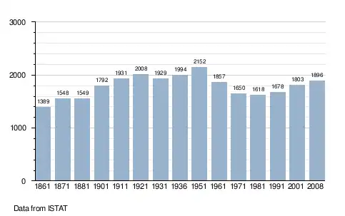 - ↑ "Popolazione Residente al 1° Gennaio 2018". Italian National Institute of Statistics. Retrieved 16 March 2019.