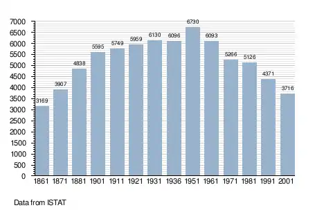 - ↑ "Popolazione Residente al 1° Gennaio 2018". Italian National Institute of Statistics. Retrieved 16 March 2019.