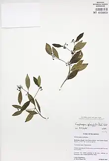 Camptocarpus sphenophyllus is a species of plant in the Apocynaceae family. It is endemic to the island of Rodrigues.[3] Isaac Bayley Balfour,[4] the naturalist who first formally described the species named it, using the synonym Tanulepis sphenophylla, after its wedge-shaped leaves (Latinized forms of Greek σφην-, sphen- and φύλλον, phúllon).[5][6]