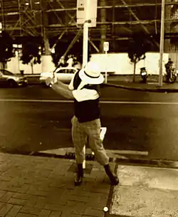Urban golf is a game, based on the original game of golf, in which individual players or teams hit a ball into a hole or at a specified target using various clubs. Urban golf is played without a traditional golf course, instead using street furniture as obstacles and targets.[1] Instead of a standard golf ball, players may use a leather ball.[2]
