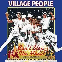Can't Stop the Music is the sixth studio album and first soundtrack by Village People, for their movie Can't Stop the Music, released in 1980. Though the movie was a commercial failure, the album was more well received, reaching No. 9 on the UK Albums Chart,[1] #47 on the Billboard 200 in the US, and #1 in Australia. The album was reissued on CD in 1999.
