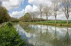Leaving Tonnerre the canal closely follows the Armançon and meanders due to hills situated between Tonnerre and Ancy-le-Franc. The canal passes through the village of Commissey before arriving in Tanlay with its impressive Renaissance château.[3] At Lézinnes boats meet a series of six electrified locks, taking them past a cement works and more grain silos at Pacy-sur-Armançon and on to Ancy-le-Franc. Here the tourist can visit the famous 16th-century château set in its vast grounds.[4]