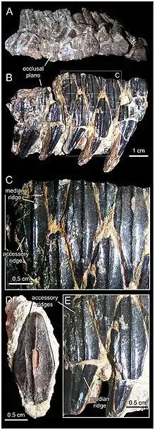 - ↑ Fondevilla, V.; Dalla Vecchia, F.M.; Gaete, R.; Galobart, À.; Moncunill-Solé, B.; Köhler, M. (2018). "Ontogeny and taxonomy of the hadrosaur (Dinosauria, Ornithopoda) remains from Basturs Poble bonebed (late early Maastrichtian, tremp Syncline, Spain)". PLOS ONE. 13 (10): e0206287. Bibcode:2018PLoSO..1306287F. doi:10.1371/journal.pone.0206287. PMC 6209292. PMID 30379888.