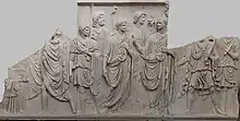 The Cancelleria Reliefs were discovered under the Palazzo della Cancelleria in Rome in the late 1930s, and owe this name to their place of finding.[1] It is not known who sculpted these works or which building they were intended to adorn, but it is believed the entire work was executed by the same man, on a commission by the Roman Emperor Domitian.[1] They are now in the Vatican Museums in Rome.
