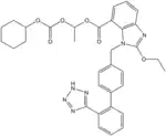 Candesartan is an angiotensin receptor blocker used mainly for the treatment of high blood pressure and congestive heart failure. Candesartan has a very low maintenance dose. Like Olmesartan, the metabolism of the drug is unusual as it is a cascading prodrug. Candesartan has good bioavailibility and is the most potent by weight of the AT-1 receptor antagonists.