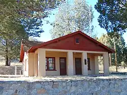 Work was first started on a new adobe house for the rangers by Forest Service workers. During excavations for the construction of the basement, workers unearthed a redwood coffin containing the remains of local pioneer Captain Joe Parks. Parks had settled in the Canelo area in 1882. After the coffin's removal, concrete was poured to form the basement, which was finished in early December 1932, when work ceased for the winter.[2][3]
