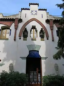 Storey building with typical structure of Puig i Cadafalch with neo-Gothic windows similar to Els Quatre Gats and a lookout tower typical in the modernisme towers. The decor of shades in blue tiles. | Ok | ![]() |