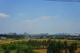 Cangzhou (Chinese: 沧州, tsang-joe) is a prefecture-level city in eastern Hebei province, People's Republic of China. At the 2020 census, Cangzhou's built-up (or metro) area made of Yunhe, Xinhua districts and Cang County largely being conurbated had a population of 1,421,843 inhabitants, while the prefecture-level administrative unit in total has a population of 7,300,783. It lies approximately 90 kilometres (56 mi) from the major port city of Tianjin, and 180 km (110 mi) from Beijing.
