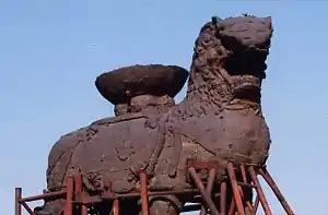 The city has historically been known in China for its wushu (Chinese martial arts) and acrobatics (specifically, the Wu Qiao school). Cangzhou is also famed for its historic thousand-year-old 40-ton sculpture, the Iron Lion of Cangzhou. The sculpture is reportedly the largest cast-iron sculpture in the world, cast in 953 in the Five Dynasties and Ten Kingdoms period. The famed lion has even given its name to a locally brewed beer (iron lion beer, 铁狮啤酒) and is a symbol of the city.[5]