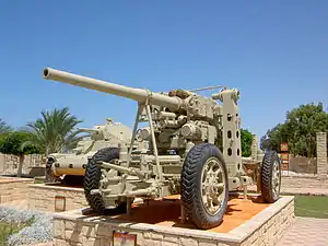 Drawing upon the German experience with the comparable 8.8 cm FlaK 18, the gun was also used as field artillery in the indirect fire role or as an anti-tank gun. In the latter role its AP shell could penetrate 140 millimetres (5.5 in) of armour at 500 metres (550 yd), and 120 millimetres (4.7 in) at 1,000 metres (1,100 yd),[7] and possibly up to 206 millimetres (8.1 in),[8] thus being able to destroy any Allied tank it faced in North Africa and mainland italy.