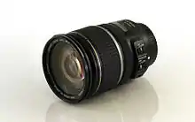 The Canon EF-S 17–55mm f/2.8 IS USM is a standard zoom lens for Canon digital single-lens reflex cameras with an EF-S lens mount. The field of view has a 35 mm equivalent focal length of 27–88mm.