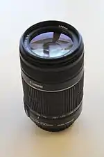 The Canon EF-S 55–250mm f/4–5.6 IS lenses are a series of telephoto zoom lenses for Canon EOS digital single-lens reflex cameras with a Canon EF-S lens mount.[1][2]