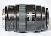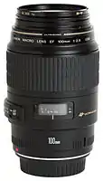 The EF 100 mm f/2.8 Macro USM lens is a prime lens made by Canon Inc. It is of the EF lens mount that fits the EOS camera system. There are three versions, the original, a second that adds a USM autofocus motor, and a recently released L series version that incorporates Image Stabilization (IS).