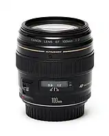 The EF 100 mm f/2.0 USM lens is a compact medium telephoto lens with a large aperture. Its physical and optical characteristics are similar to the Canon EF 85 mm f/1.8 lens.
