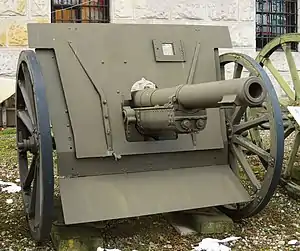 The Canon de 75 modèle 1914 Schneider was a light field gun used by the French Army of World War I. It was created by modifying an export-model field gun built by Schneider et Cie at Le Creusot to fire shells from the family of 75mm artillery ammunition used by the Canon de 75 modèle 1897 and the Canon de 75 modèle 1912 Schneider.[1]