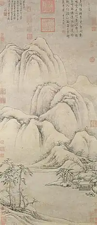 Cao Zhibai (Chinese: 曹知白; pinyin: Cáo Zhībái; Wade–Giles: Ts'ao Chih-pai; 1271–1355) was a renowned Chinese painter and bibliophile from the Yuan Dynasty.[1] His courtesy name was Youxuan (又玄) or Zhensu (真素), and sobriquet Yunxi (云西). His painting style was similar to that of Zhao Mengfu, who helped revitalize the Li-Guo landscape painting style in the Yuan period.[2]