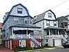 1891-92 | Stephen Decatur Button | William Cassedy | Seven essentially identical balloon frame houses built on the site of the Atlantic Hotel. Three stories in height, with a one-story porch and a bay window with an ogee roof at the second story, they face an off-street courtyard. | XX | NJ0013 |