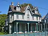 Several fires destroyed portions of the town and the mostly wooden, frame-built houses. The fire of 1878 destroyed about half the town, but many buildings were quickly rebuilt. This fire gave a particular boost to Button's career, and many of the local builders appear to have copied Button's style at this time.[6] These newer buildings were built with gingerbread trim, gables and turrets.[11][12]