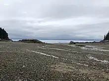 The forests of Cape Rosier and the nearby islands are dominated by spruces and firs. The northeastern part of the State of Maine is classified in the Downeast Coast ecoregion (a subset of Acadian Plains and Hills) by the Environmental Protection Agency.[4] Most of the shoreline consists of bluffs, along with salt marshes and tidal flats. Roughly 99% of Cape Rosier's coastal bluffs are stable, according to Maine Geological Survey observations.[5] The beaches are found in coves and are mainly rocky at high tide, some becoming mud flats at low tide.