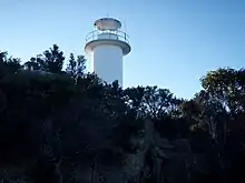 The Cape Tourville Lighthouse is an unmanned, automatic lighthouse built in 1971 by private contractors (Hurburgh and Olbrich).[2] The road was constructed through virgin eucalypt forest, along with the powerline, with minimal disruption to the National Park. The top of the granite headland was levelled by blasting to provide the base for the lighthouse and parking area.