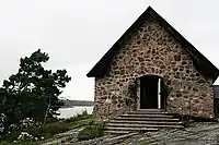 1958 Hilding started together with his family and friends to carry stones from the shores of the island to where the chapel would be. Without technical help he built metre thick walls and constructed a replica of St Anna old stone church which is from the 14th century. For the altar stones have been gathered from Old Swede's Church in Delaware, The Church of Laying Our Lady's Holy Robe in Kremlin, Moscow and the Lavra Monastery in Kyiv, Ukraine.