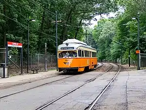 The Dorchester and Milton Branch Railroad opened from Neponset to Mattapan in December 1847.[5] Service was discontinued on August 26, 1929, as the new high-speed trolley line was completed from Ashmont to Milton by the Boston Elevated Railway (BERy).[6][2] The trolley line was extended from Milton to Mattapan on December 21, 1929, with new intermediate stops at Central Avenue and Valley Road.[7][2]