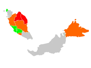 - Malaysia: Apostasy is not a federal crime.[16] Islamic apostasy laws differ from state to state.[17] Malaysia's states Kelantan and Terengganu mandate the death penalty for apostasy, but federal law prohibits execution for this purpose, and so, it is never implemented in practice. The maximum punishment any state can currently convict a Muslim apostate to is 3 years imprisonment.[3]