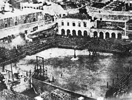 Prior to the foundation of the Alameda Gardens in 1816, its location (the Grand Parade, an assembly ground situated to the south of the town, beyond Southport Gates) was the place of public executions.[3] During the 19th century, public military hangings were carried out at Grand Casemates Square,[4] with the last one held in 1864.[5]