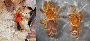 These spiders of about 2 to 5 millimetres (0.079 to 0.197 in) are rarely noticed, but generally look like somewhat faded woodlouse hunter spiders in the genus Dysdera. The carapace (cephalothorax or prosoma) is orange and the abdomen (opisthosoma) light gray. The two-eyed species have their two eyes in the anterior middle of the carapace.