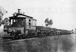A trial survey of a railway to Captains Flat was completed in May 1928.[2] The proposal was referred to the Parliamentary Standing Committee on Public Works on 27 March 1929. Legislation authorising the construction of the line was passed on 16 June 1930.[3] Due to the prevailing worldwide financial depression, the New South Wales government petitioned the federal government in 1929 for the Commonwealth Railways to construct the line and make it available to the New South Wales Government Railways, under a similar arrangement to the Queanbeyan to Canberra railway. The proposal was rejected the following year and the railway was shelved.[4]