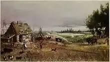 In 1909, a military training camp named "Camp Sewell" was established 10 kilometres (6.2 mi) west of Carberry along what is now PR 351 on the south side of the Canadian Pacific Railway line. The name of the camp was changed in 1915 to "Camp Hughes" in honour of Major-General Sir Sam Hughes, Canada's Minister of Militia and Defence at the time.[5] The soldiers and support staff stationed at Camp Hughes naturally maintained very close social and economic ties with the town of Carberry which was only a short distance away. Extensive trench systems, grenade and rifle ranges, and military structures were built at Camp Hughes between 1915 and 1916, and a variety of retail stores and entertainment complexes on a double-avenued area close to the main camp formed a lively commercial midway. During World War I, more than 38,000 troops of the Canadian Expeditionary Force trained at the camp, giving it the largest population in the province of Manitoba outside of the capital city, Winnipeg. Many of the soldiers who were trained at the camp were involved in the infamous Battle of Vimy Ridge.[6] The military continued to train soldiers at Camp Hughes until 1934, when troops were moved to CFB Shilo and CFB Winnipeg for financial and logistical reasons.[7] Camp Hughes has been designated as a Provincial Heritage Site, and although the site is no longer active, it is still monitored by the Canadian Department of National Defense.
