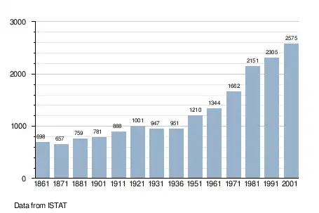 - ↑ "Popolazione Residente al 1° Gennaio 2018". Italian National Institute of Statistics. Retrieved 16 March 2019.