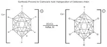 2, refluxing under dry argon to fully chlorinate the molecule yielding carborane acid, but this has been shown to fully chlorinate only under select conditions.[20][17][21]