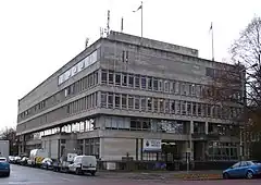 The current five storey Cardiff Central police station was designed by Cardiff's city architect John Dryburgh and built on the southern corner of Cathays Park between 1966 and 1968. It is described as "The most successful post-war building in Cathays Park"[1] and the only post-war building in the area "to be both modern and majestic".[2] The detention facilities at the station were inadequate with only four cells. These were replaced by sixty cells at the new Cardiff Bay police station, which opened in 2009.[3]
