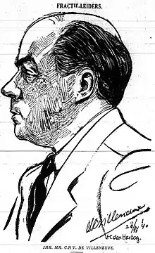 In Semarang, De Villeneuve was a partner in the long-established law practice of J.S.G. Scheltema. Several stalwarts of colonial policy and colonial public service had worked at the law practice before De Villeneuve arrived: C.Th. van Deventer (a leading advocate of the 'Ethical Policy' in colonial Indonesia and later member of parliament in the Netherlands), T.B. Pleyte (later a member of parliament and later Minister for Colonial Affairs) and D. Fock (later Governor General), as well as J.H. van Hasselt and O. van Rees (both later occupied senior positions in association of owners of sugar factories in colonial Indonesia (Bond van Eigenaren van Nederlandsch-Indische Suikerondernemingen, BENISO).[2]