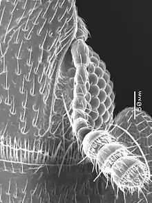 SEM photo of antennal groove of Carinophloeus raffrayi