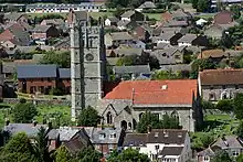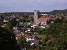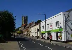 Carisbrooke is a village on the south western outskirts of Newport, in the civil parish of Newport and Carisbrooke, Isle of Wight, England.[2] It is best known as the site of Carisbrooke Castle. It also has a medieval parish church. St Mary's Church (overlooking Carisbrooke High Street with views to the castle), began as part of a Benedictine priory established by French monks about 1150. The priory was dissolved by King Henry V of England in 1415 during the French Wars. In 1907 the church was restored. Its has a 14th century tower rising in five stages with a turret at one corner and a battlemented and pinnacled crown.
