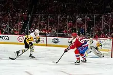 In the 2015–16 season, Hagelin struggled with his new club, failing to reproduce his scoring presence from his tenure with the Rangers. With 12 points in 43 games, Hagelin was traded by the Ducks to the Pittsburgh Penguins in exchange for forward David Perron and defenseman Adam Clendening on 16 January 2016.[21] Hagelin then went on to produce 27 points in 37 games, helping spark the Penguins' mid-season turnaround with his speed. He was also a key contributor in the playoffs, scoring 16 points en route to a 2016 Stanley Cup championship.[22] Hagelin again won the Cup in 2017, defeating the Nashville Predators in six games. Although that season was marred by injury and low point production, Hagelin did score the final goal of the playoffs, an empty netter in game six, which sealed the 2–0 victory.