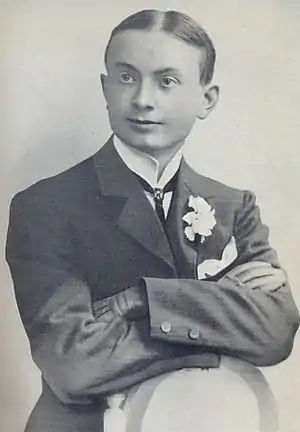 He was studying Law at the University of Freiburg when in 1901 he contracted tuberculosis which was widespread in Europe at that time. He went to the Mediterranean island of Corsica to recover in the Spring of 1901, taking rooms in the pretty town of Ajaccio on the island's west coast. During this stay he met a widow, Josephina Molitor (née Stadelhofer), a mother of seven children, who was there with her two youngest daughters, Lina (25) and Olga (19). The group started going for walks together and both daughters liked Hau, who was very polite.[1]