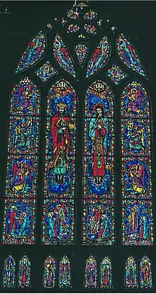 Monsignor McGough knew Carl also preferred windows with the brilliant blue characteristic of Chartres Cathedral.[10] And, he liked Carl and his work. So, the monsignor insisted that Carl finish the windows in his church. With Edward La Potka's blessing, Carl took over the job and started his own business, launching the Century Stained Glass Studio.[1][3]