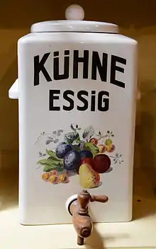 Carl Kühne KG is a German food manufacturer which mainly produces vinegars and delicacies. As one of the largest vinegar, pickled gherkin and mustard producers in Europe, the family-owned business sells its products in over 50 countries. Kühne produces a range of condiments, salad dressings, pickled foods and sauces.[2] In addition to its products for the end consumer, Kühne also supplies the gastronomy and food industries. Two-thirds of their sales are generated in Germany and one third abroad. Its products are distributed to the fast food and food sectors in Europe, the Middle East, Asia, Africa, Australia and America.
