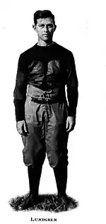 Lundgren enrolled at the University of Illinois Urbana–Champaign in 1898, studied civil engineering, and graduated in 1902.[2][5] As a senior, he published a paper titled, "Comparative strength of gravel and broken-stone concretes".[6] While at Illinois, he played at the halfback and fullback positions for the Illini football team for three years. He was also a pitcher for the Illini baseball team from 1899 to 1902 and was the team captain in 1902.[3][7]