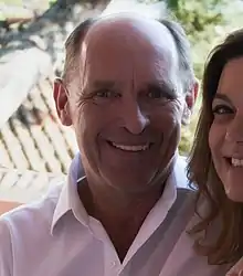 Von Bismarck has two children with Nathalie Bariman, i.e. a son and heir apparent to the princely title, Count Alexei von Bismarck-Schönhausen, and a daughter, Countess Grace von Bismarck-Schönhausen. Bariman is Jewish, and they married in a Jewish ceremony.[8][10][11] German Chancellor Angela Merkel is reported to have told the couple, "You two have united history... the next Prince of Bismarck will be a mix of both religions."[8]