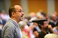 Campuzano contested the 1996 general election as a CiU candidate in the Province of Barcelona and was elected to the Congress of Deputies.[9][10] He was re-elected at the 2000, 2004, 2008, 2011, 2015 and 2016 general elections.[11][12][13][14][15][16][17][18][19][20][21][22] Campuzano has been spokesperson for the Catalan European Democratic Party (PDeCAT) in the Congress of Deputies since April 2017 and was a member of the Spanish delegation in the Parliamentary Assembly of the Organization for Security and Cooperation in Europe (OSCE).[1][4][23] Despite having been proposed by its party to be the main candidate of Together for Catalonia to seek the April 2019 Spanish general election,[24] he wouldn't be chosen in the end,[25] being replaced by Laura Borràs as the main candidate by Barcelona.[26] Eventually, Carles Campuzano announced that he would be leaving the PDeCAT because of differences on its political ideology and project.[27][28]