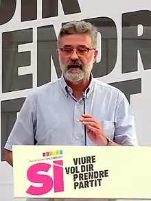 During the 1980s he was a member and spokesman for the Call to Solidarity in Defense of Catalan Language, Culture and Nation, in the 90s he was a member of the secretariat of the People's Unity Assembly and currently is a member of Endavant. In the Catalan elections held on 27 September 2015, he formed part of the Popular Unity Candidacy–Constituent Call coalition which won 10 seats in the 135-member Parliament of Catalonia. He led the Popular Unity Candidacy party in the 2017 Catalan elections, in which won 4 seats.[2][3]