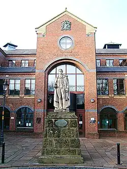 A statue of the former member of parliament, Major Francis Aglionby, which was sculpted by Musgrave Watson and had been on display in the entrance hall at Carlisle Citadel since 1843,[11] was transferred to the courtyard in front of the main entrance of the new Courts of Justice shortly after it opened.[12][13]