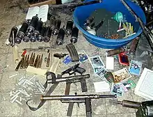 Carlo (Arabic: كارلو) (also referred to as Carl Gustav; Arabic pronunciation: كارلوجستاف, "Karlu Justhaf")[4] is an improvised submachine gun manufactured by small workshops in the Palestinian territories. The design was inspired by the Swedish Carl Gustav m/45 and its Egyptian Port Said variant, however the similarity is often only passing.[1] The Carlo's homemade nature makes it affordable on the black market, where it is purchased not only by Palestinians targeting Israelis[5] but also by Arab-Israeli gangs.[4] The Carlo is cheap and requires little skill or equipment to manufacture, but it is inaccurate and prone to jamming and misfire.[1] The weapon is named after the Carl Gustaf m/45.[6]