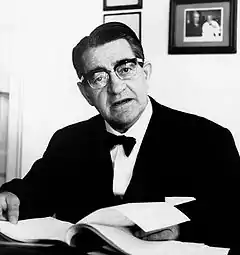 He also served as senator.[7] He was appointed minister for scientific research to the center-left coalition government led by Prime Minister Aldo Moro in December 1963.[3][8] He proposed that the ministry should be institutionalized in order to make it more effective in coordinating research activities.[9] However, this proposal led to severe criticisms due to power struggle among the ministers.[9] After serving in the post in the second cabinet of Aldo Moro, Carlo Arnaudi was removed from office in a cabinet reshuffle in February 1966.[3][8] He died in Milan on 23 April 1970.[3]